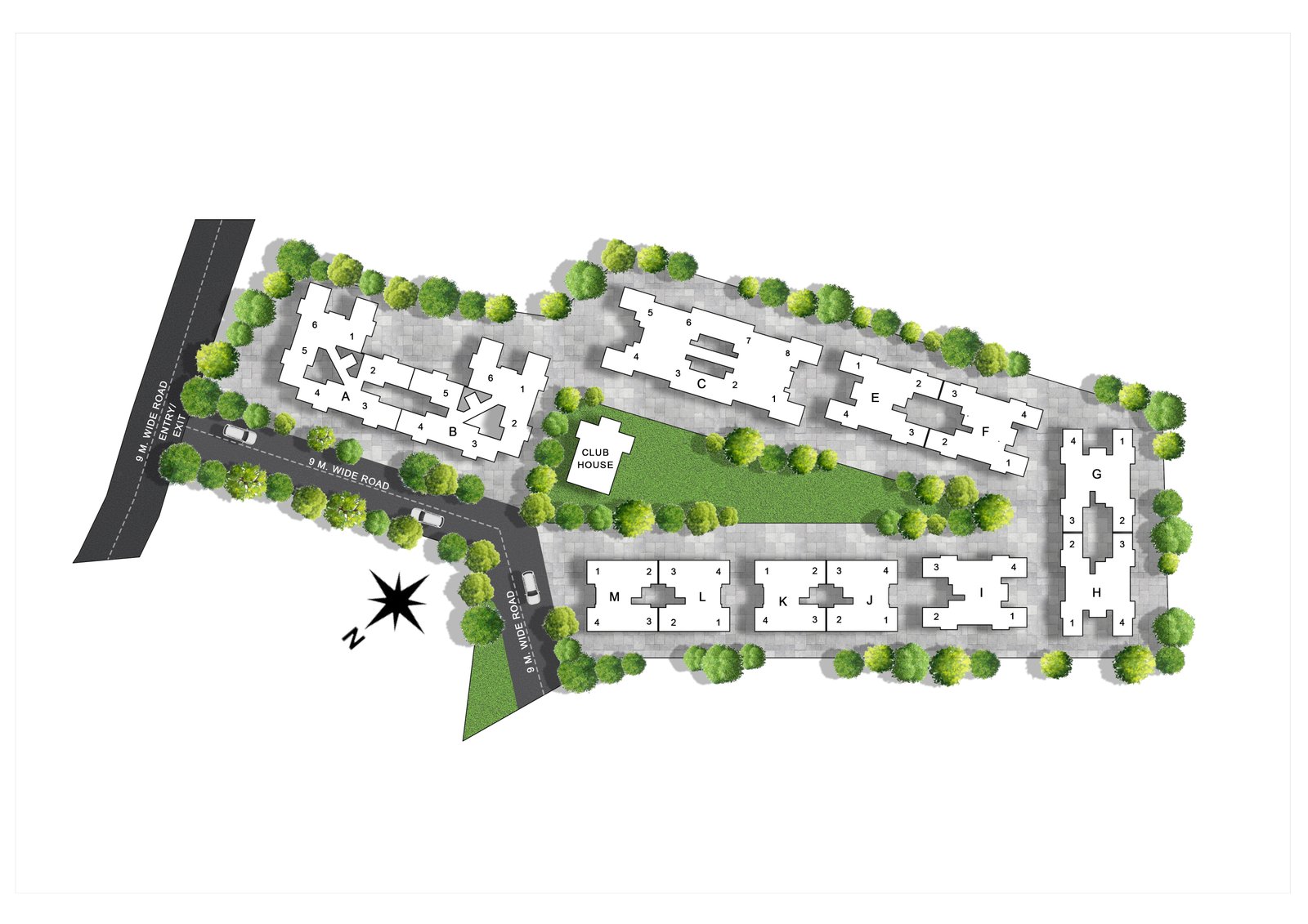 like a clubhouse, gym, kids play area, and community spaces.